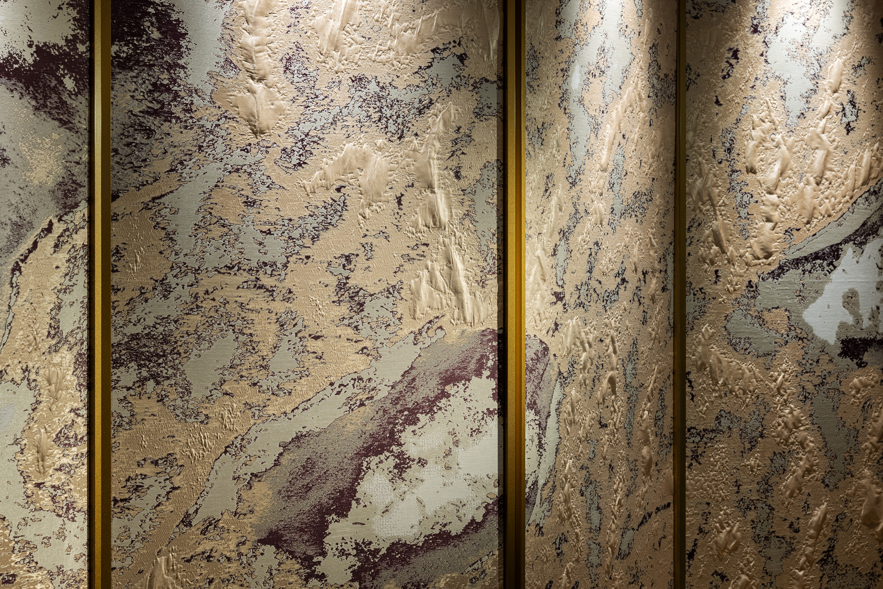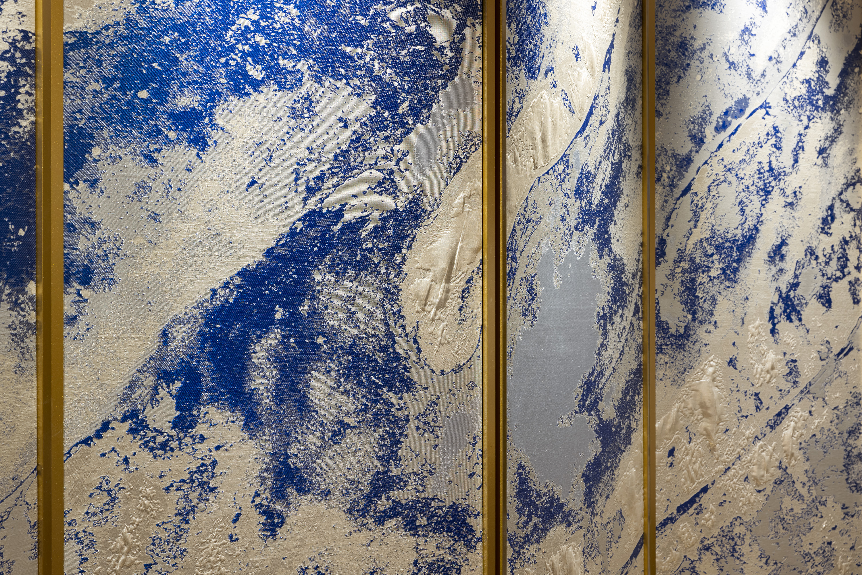 screens of Nishijin brocade, combining rich textures with the fukurashi-ori