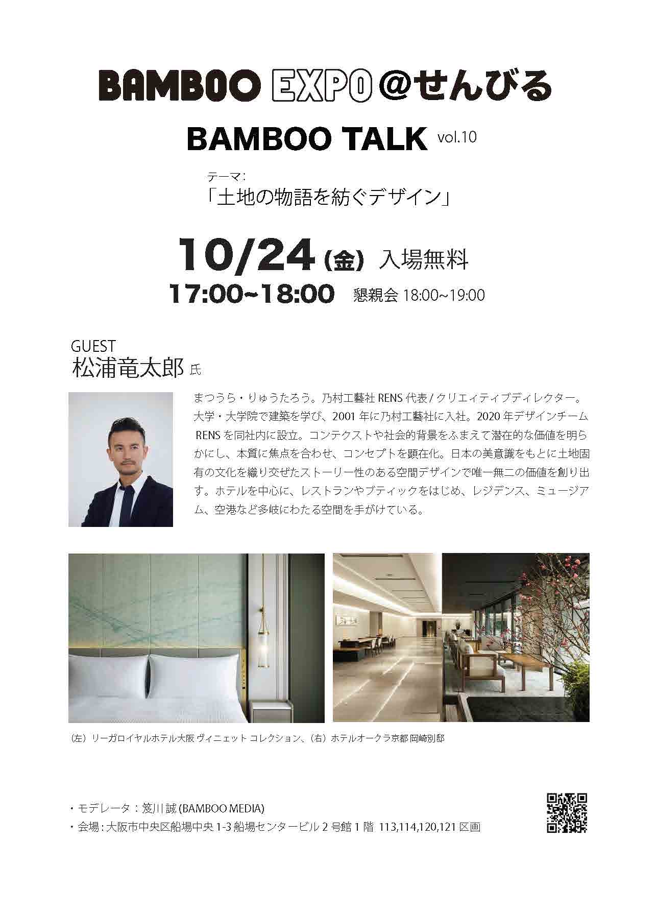 BAMBOO TALK vol.10に、RENSの松浦竜太郎が登壇します。