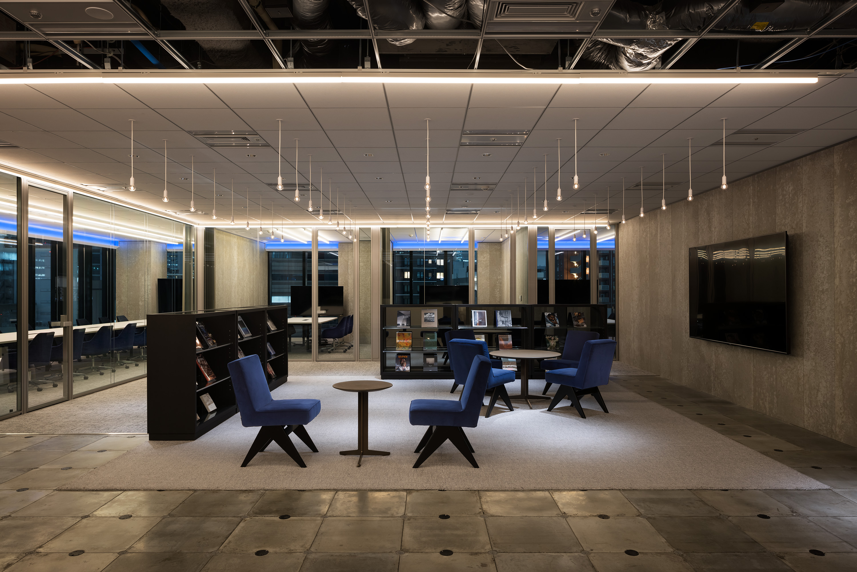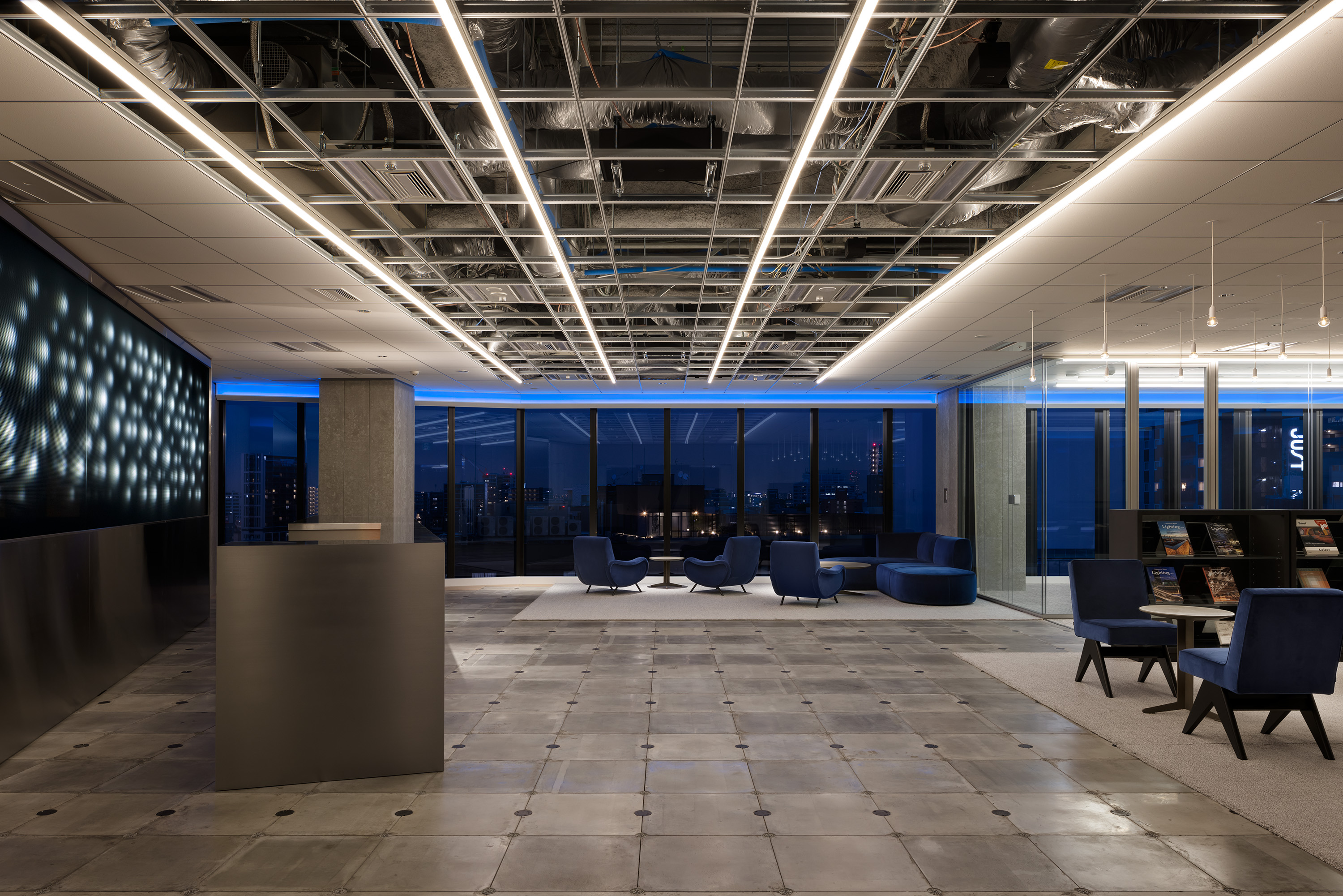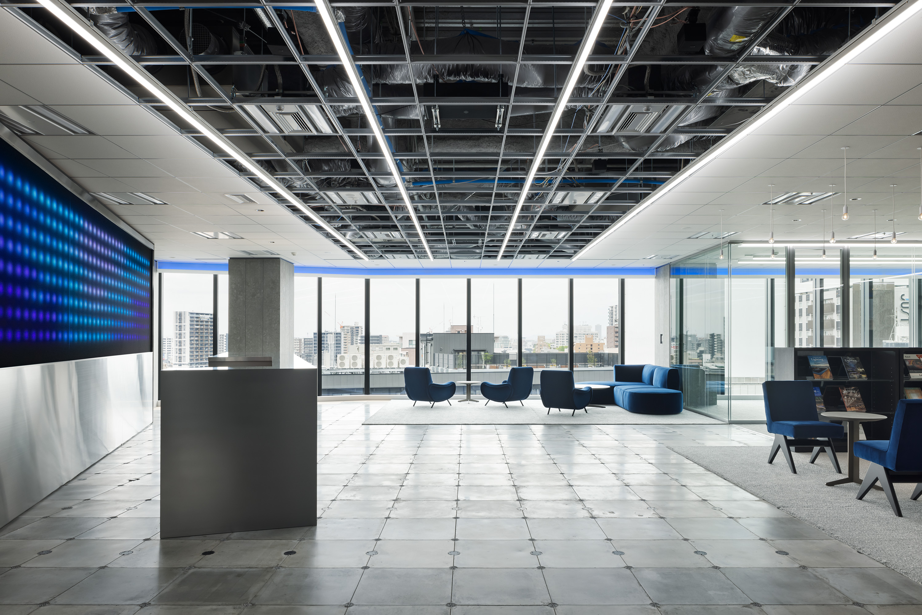 環境配慮とデザイン性を融合させた先進的なオフィス空間を特徴とし、「光」「青」「環境配慮型素材」をデザインエレメントに、企業のパーパスとビジョンを体現する場を実現しました。